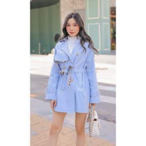 เสื้อ Trench coat ผ้า Tweed รุ่นนี้ทรงดีมาก ความยาวกำลังดี ด้านในบุซับในลายตารางกันหนาวได้ดีมาก มาพร้อมกับสายรัดเอวที่สามารถผูกเป็นเข็มขัดด้านหน้า หรือผูกโบว์ด้านหลังให้ดูเข้ารูปทรงสวย มีช่องกระเป๋า2 ข้างล้วงใส่ของได้